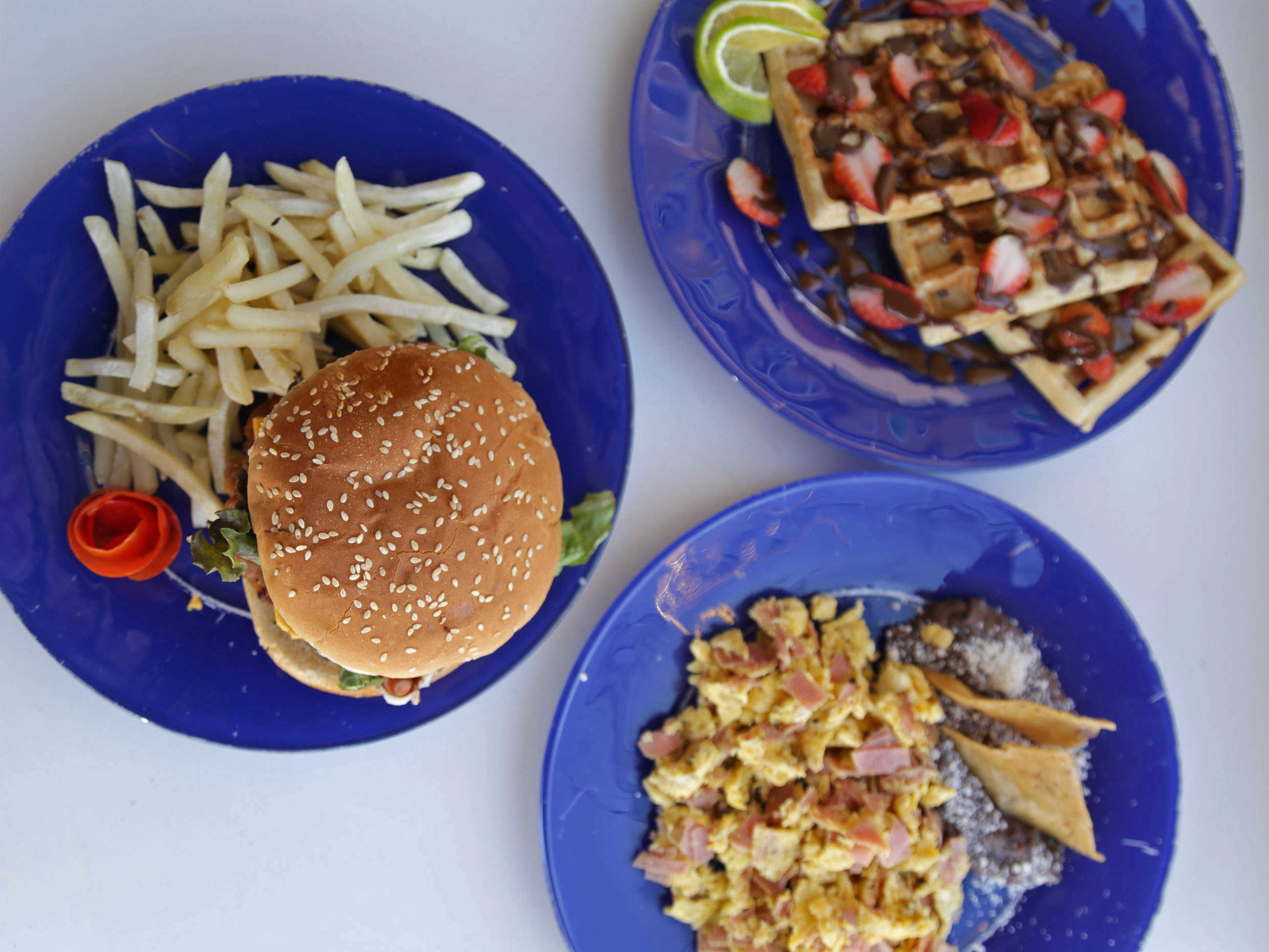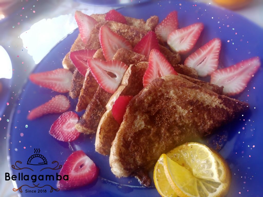 Pan de caja rebosado en huevo, canela y azúcar, frito con mantequilla, acompañado de tus ingredientes favoritos