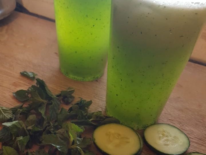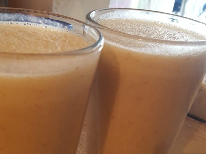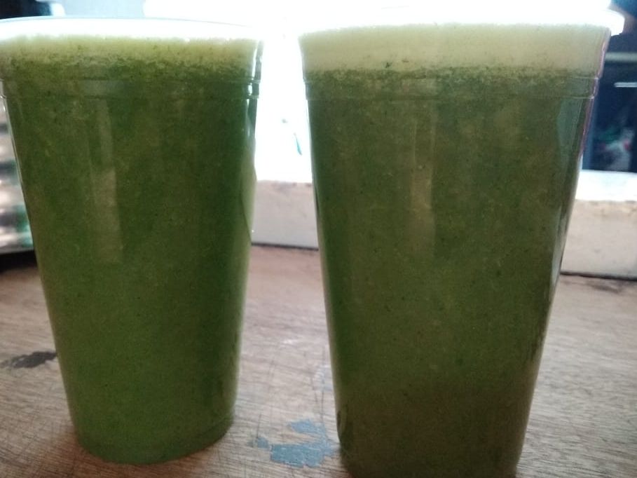 Mezcla de jugo de naranja con nopal, apio, manzana verde y espinaca