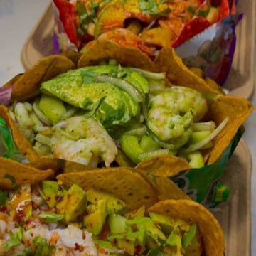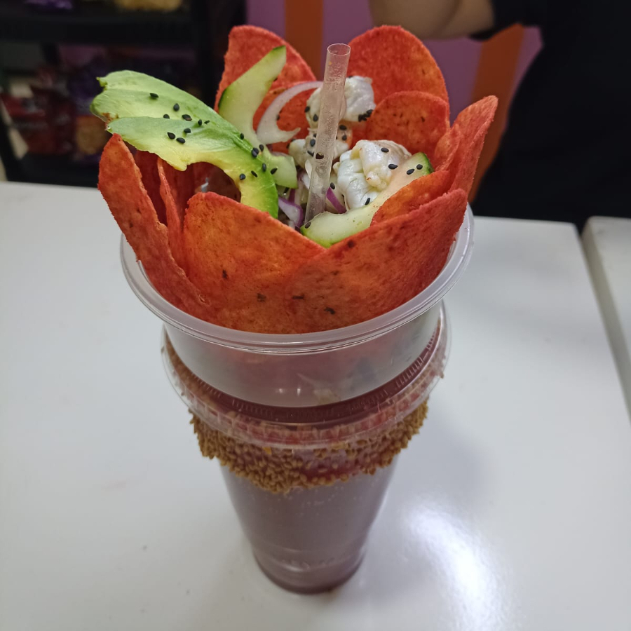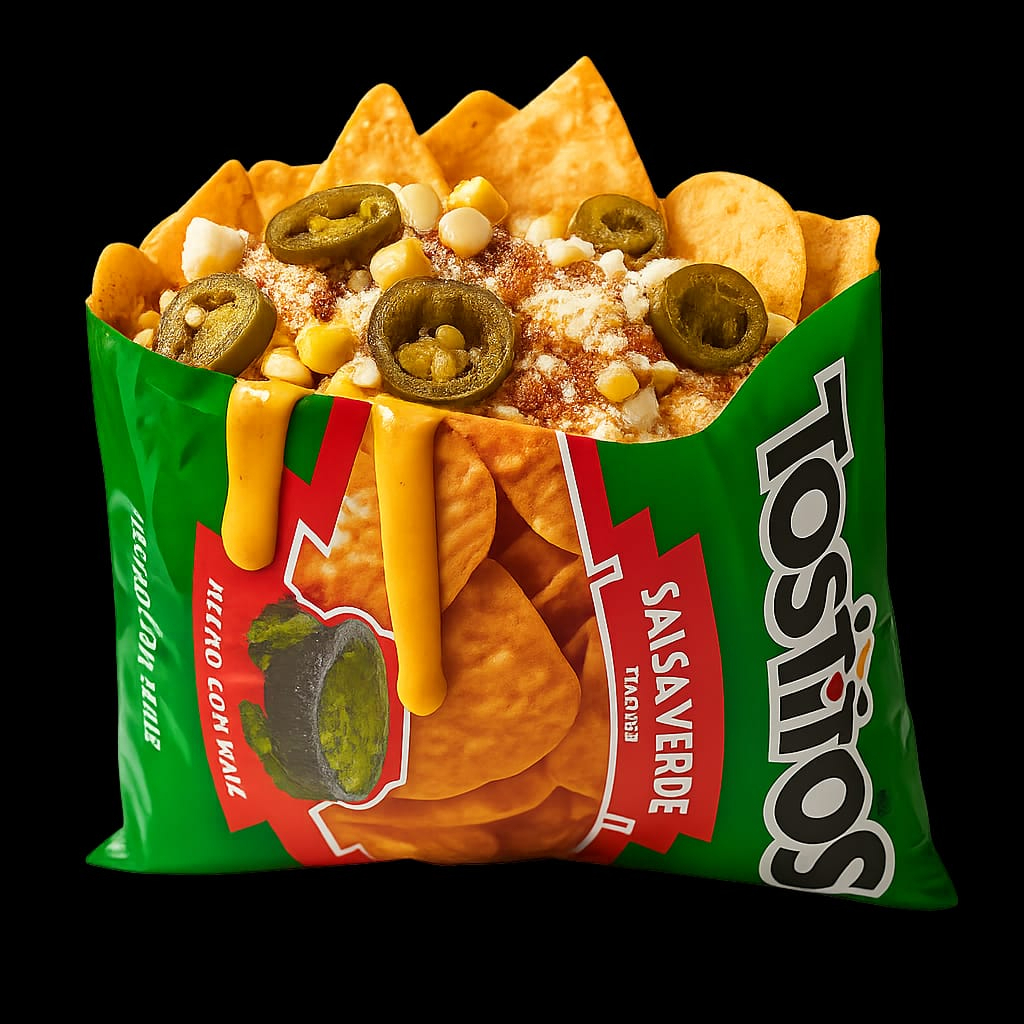 1 bolsa de tostitos verde o Flamin, aguachile verde, aguacate y ajonjoli negro.
