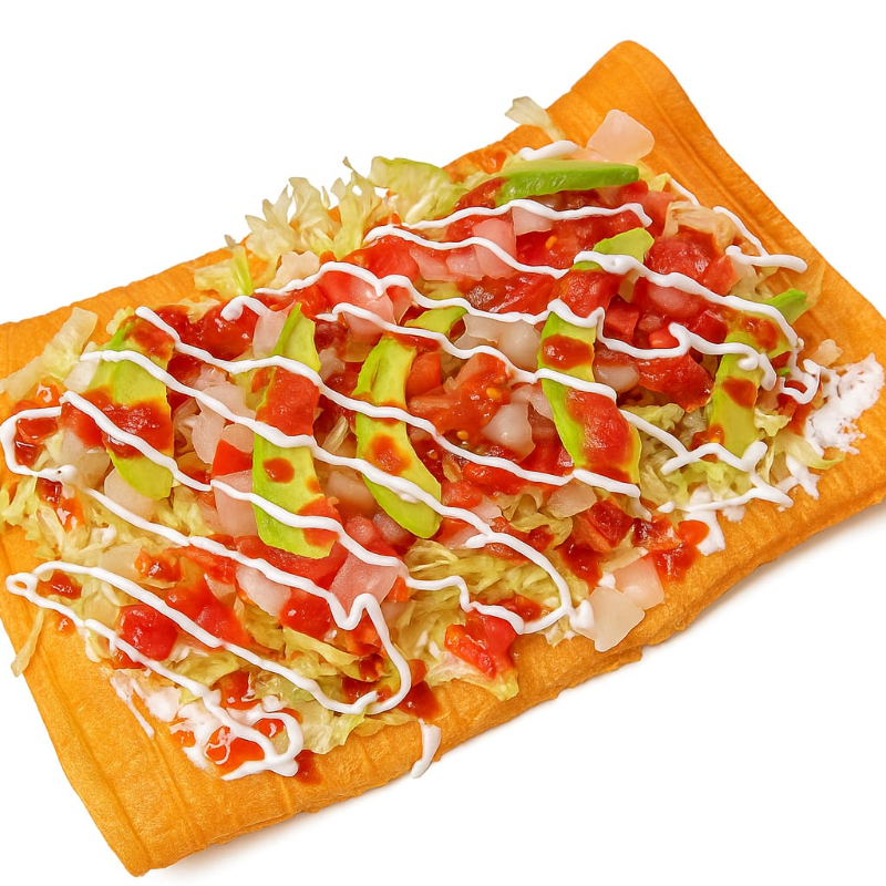 base de lechuga, jitomate, cueritos, aguacate, queso sierra, crema, salsa casera y salsa picante.