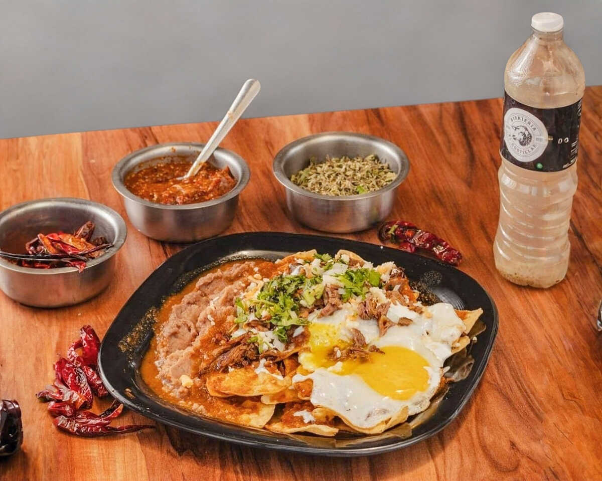 Riquísimos chilaquiles con birria, bañados con nuestra deliciosa salsa y coronados con un huevito estrellado. Acompañados con cebolla, cilantro y salsa picante. Incluye un consomé.