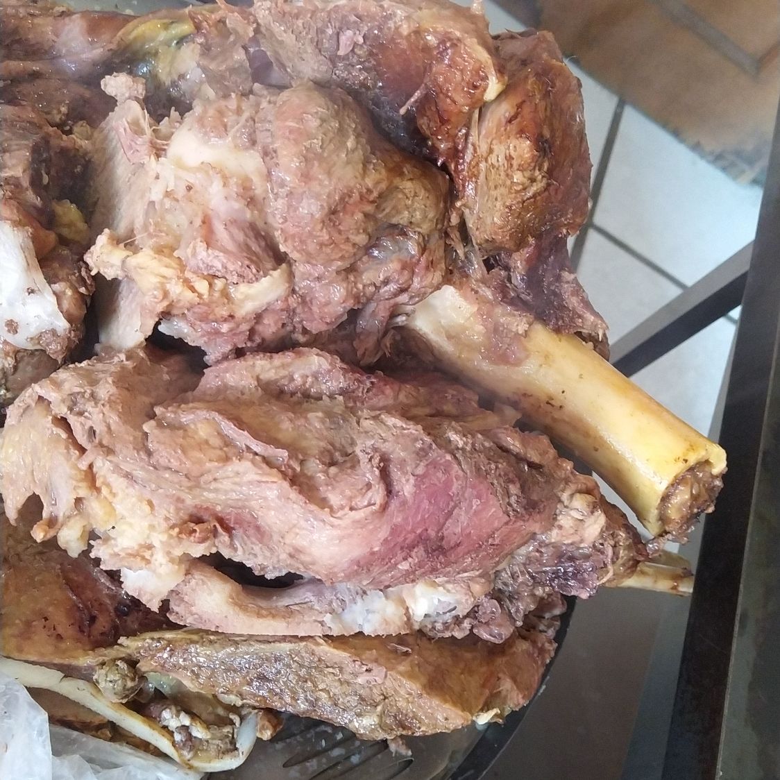 Un kilo de birria de res, salsa, consomé, verdura, picante.