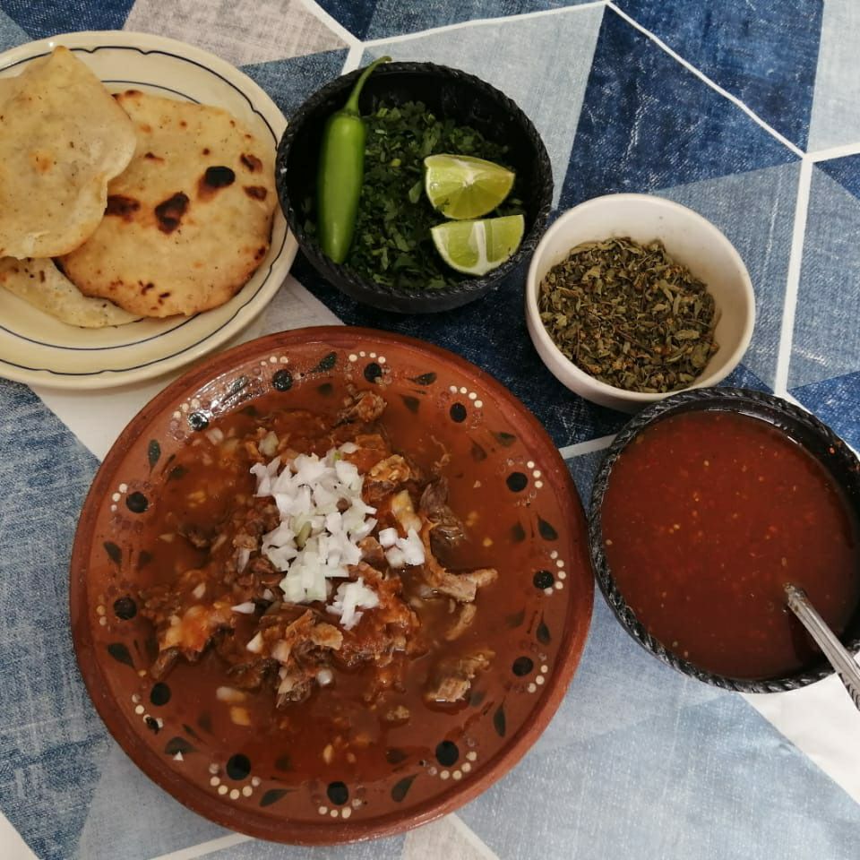 Carne de res 95g, salsa, consomé, tortillas, verdura.