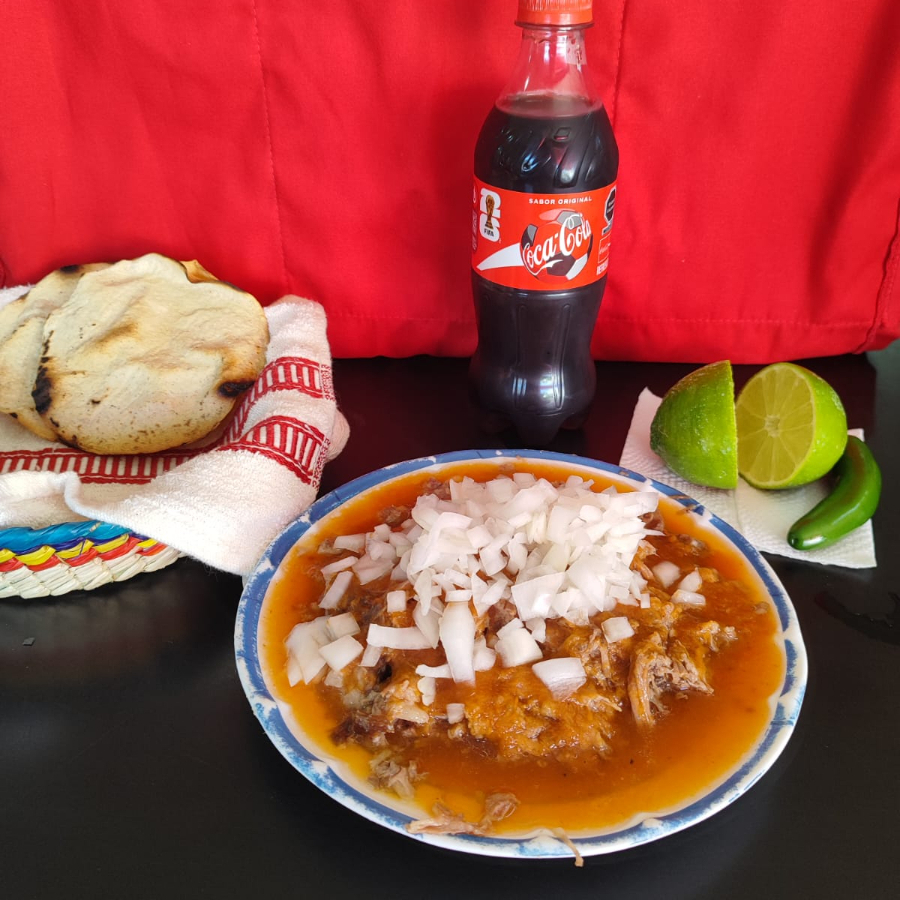 Incluye un plato de birria, consomé caliente y un refresco (355 o 400 ml).