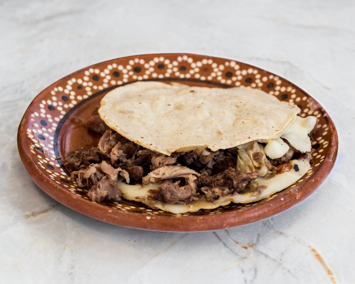 quesadilla de tortilla de maíz con carne de borrego