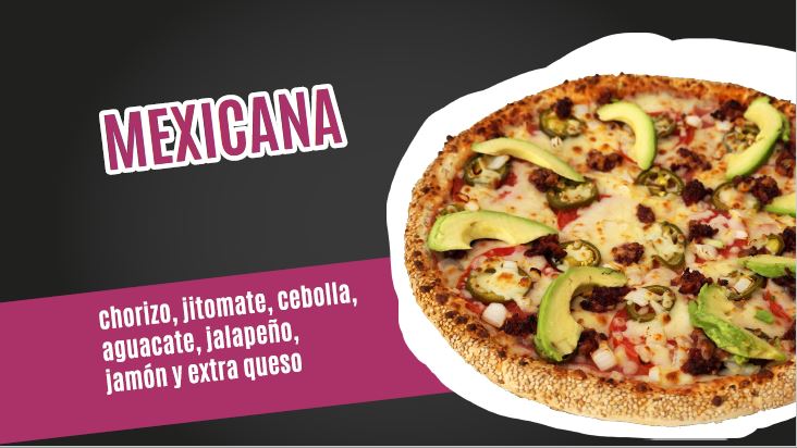 Champiñón, salchicha italiana, aceitunas negras, salsa chipotle y extra queso.