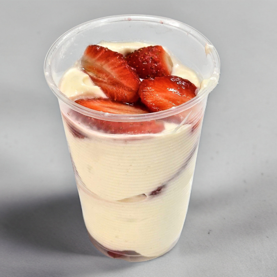 Trozos de fresa con crema dulce de la casa. Frescas, delicadas y el final perfecto para cualquier comida.