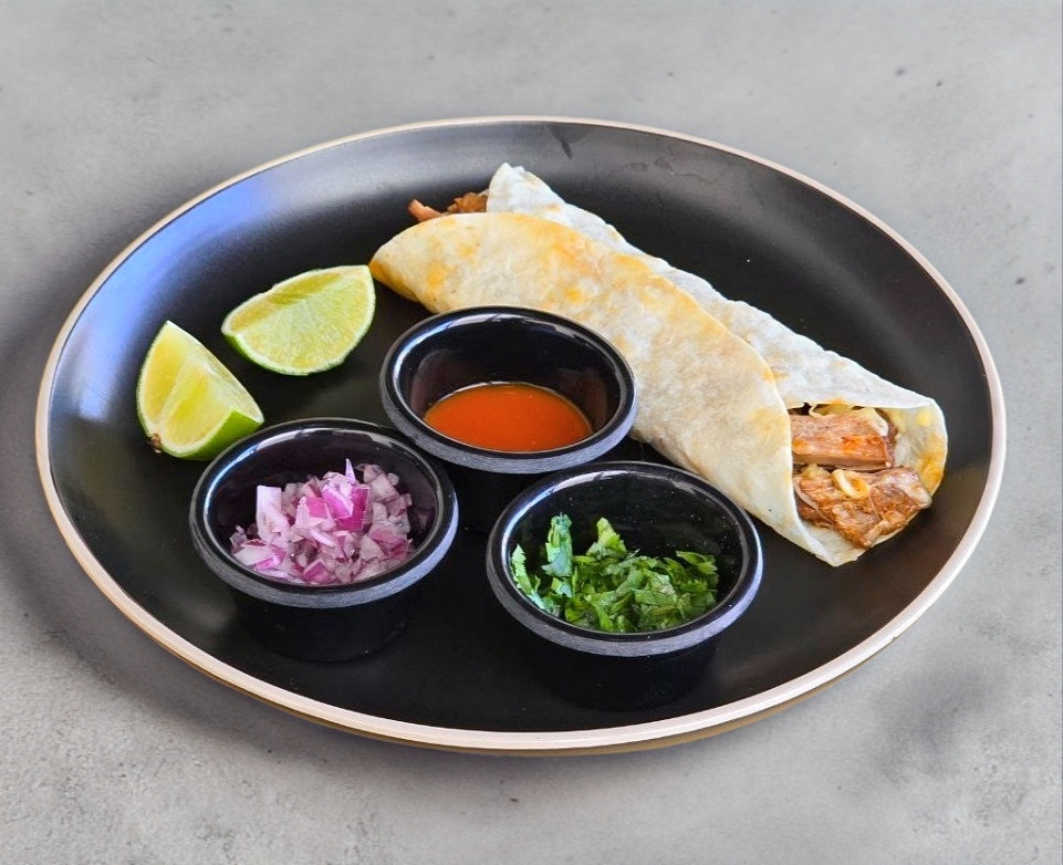Bolillo crujiente por fuera y suave por dentro, relleno con barbacoa de res cocida lentamente hasta deshacerse con el primer bocado. Se acompaña de cebolla, cilantro fresco y salsas de la casa.