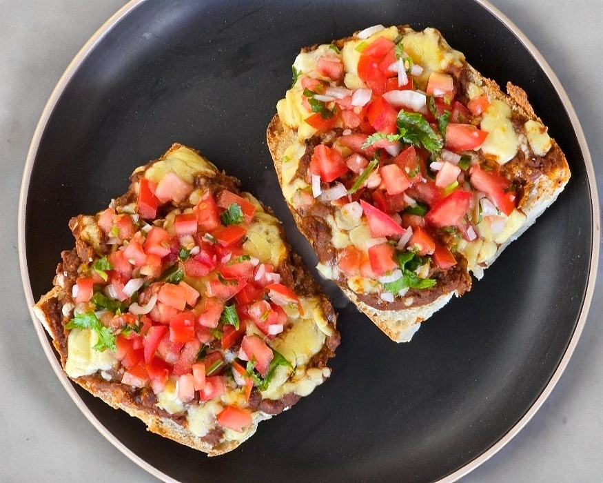 Bolillo del día, dorado al punto, con frijoles refritos, queso ranchero gratinado y un toque fresco de pico de gallo. Un clásico bien hecho, como debe ser.