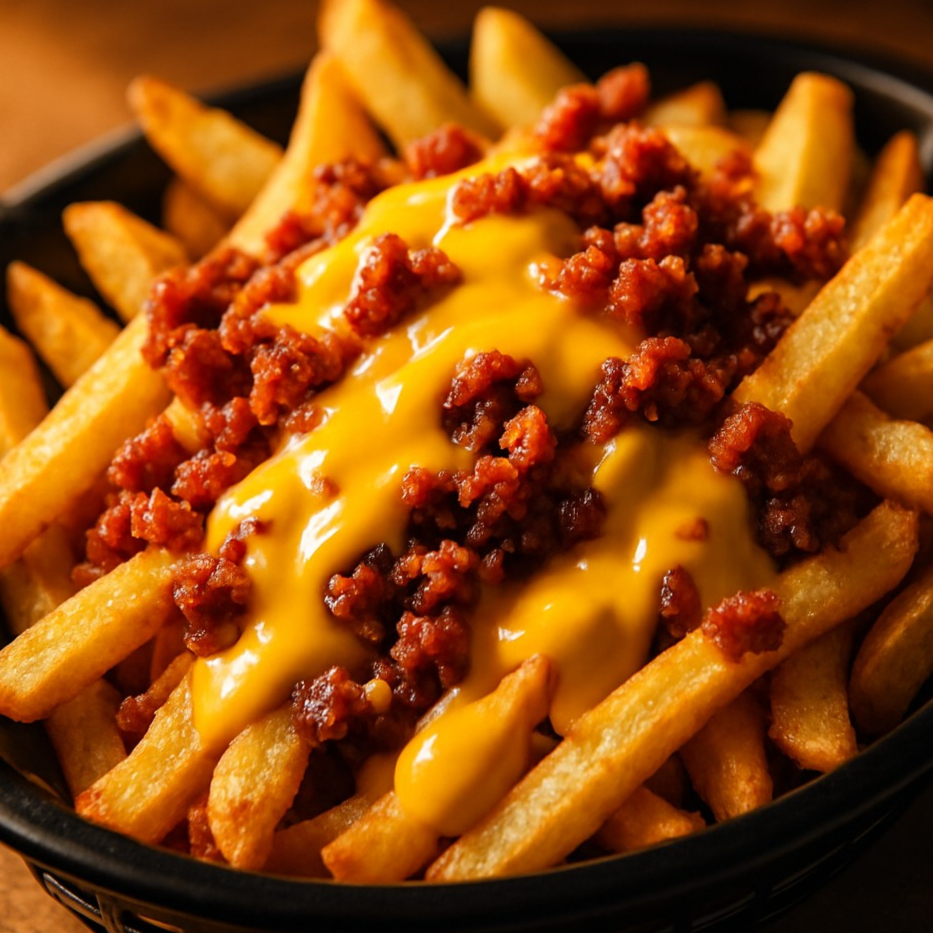 Papas a la francesa con un toque de albahaca, queso mozzarella, pepperoni y salsa italiana.