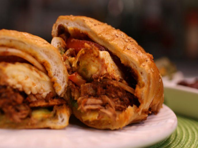 Carnitas, queso fresco jitomate cebolla aguacate mayonesa calentada al grill con mantequilla