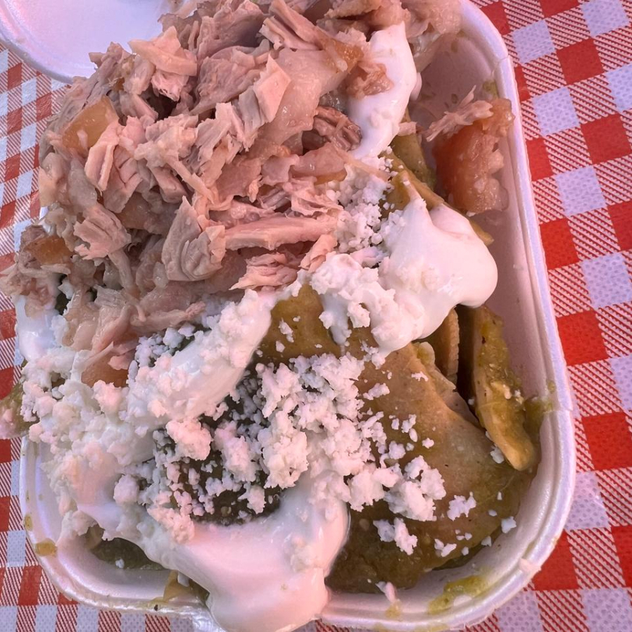 Chilaquiles grandes con salsa verde con Carnitas