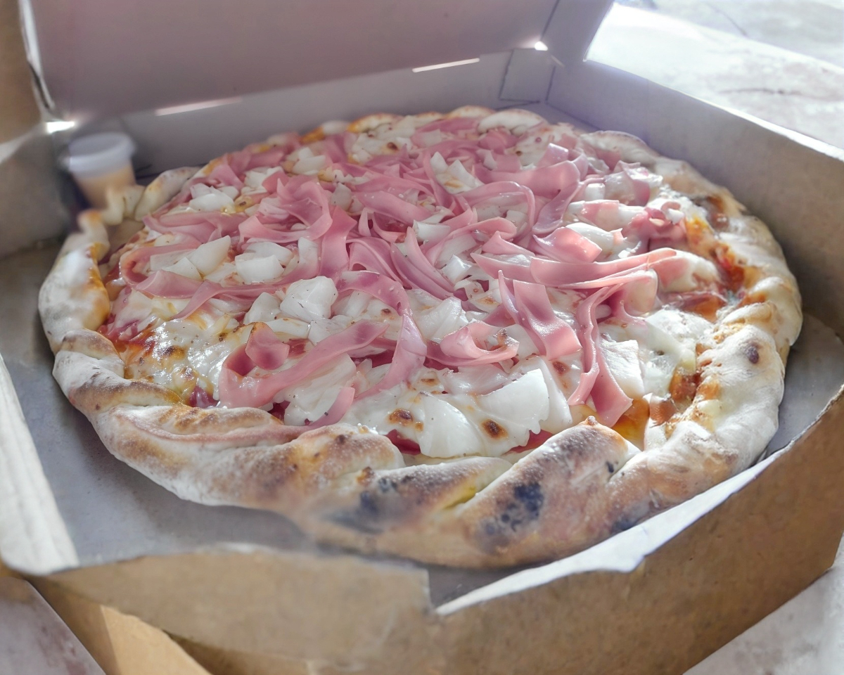 Salsa tomate, champiñón, japaleño, pimiento, jamón y mozzarella
