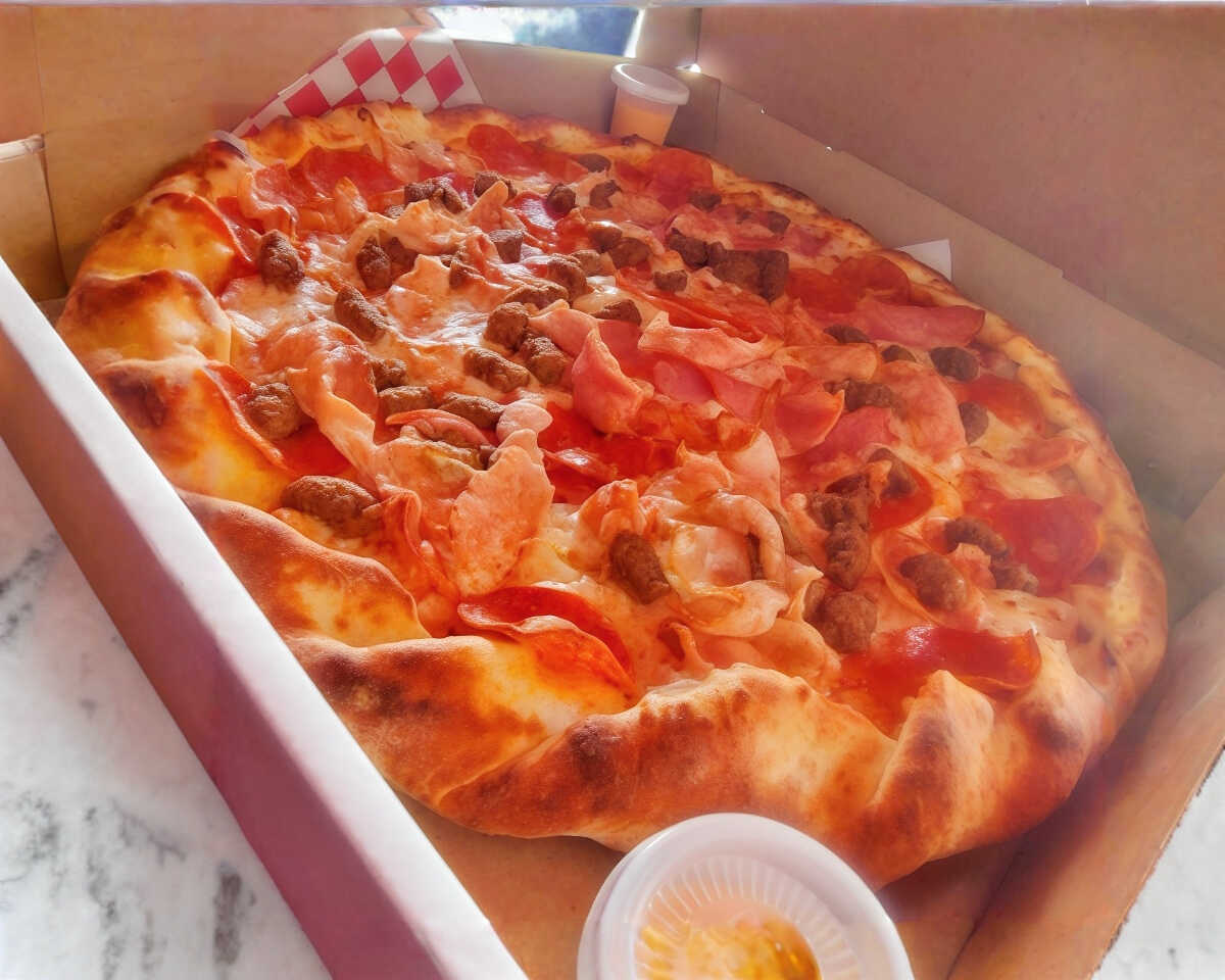 Salsa tomate, pepperoni, pimiento, salchica italiana, cebolla, champiñon y mozzarella