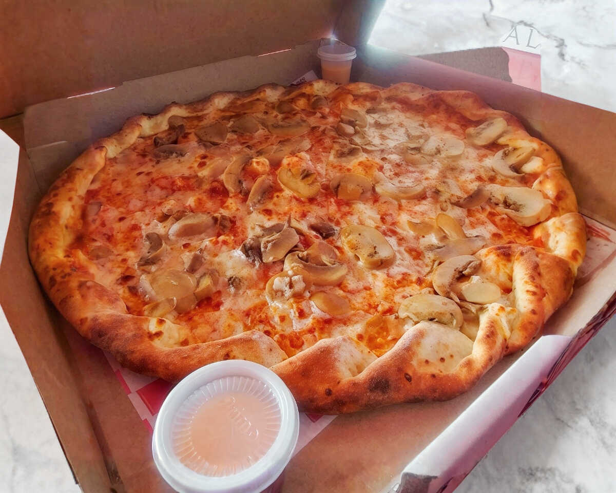 Salsa de jitomate, queso & champiñones (Pizza grande de 14 pulgadas y 8 rebanadas)