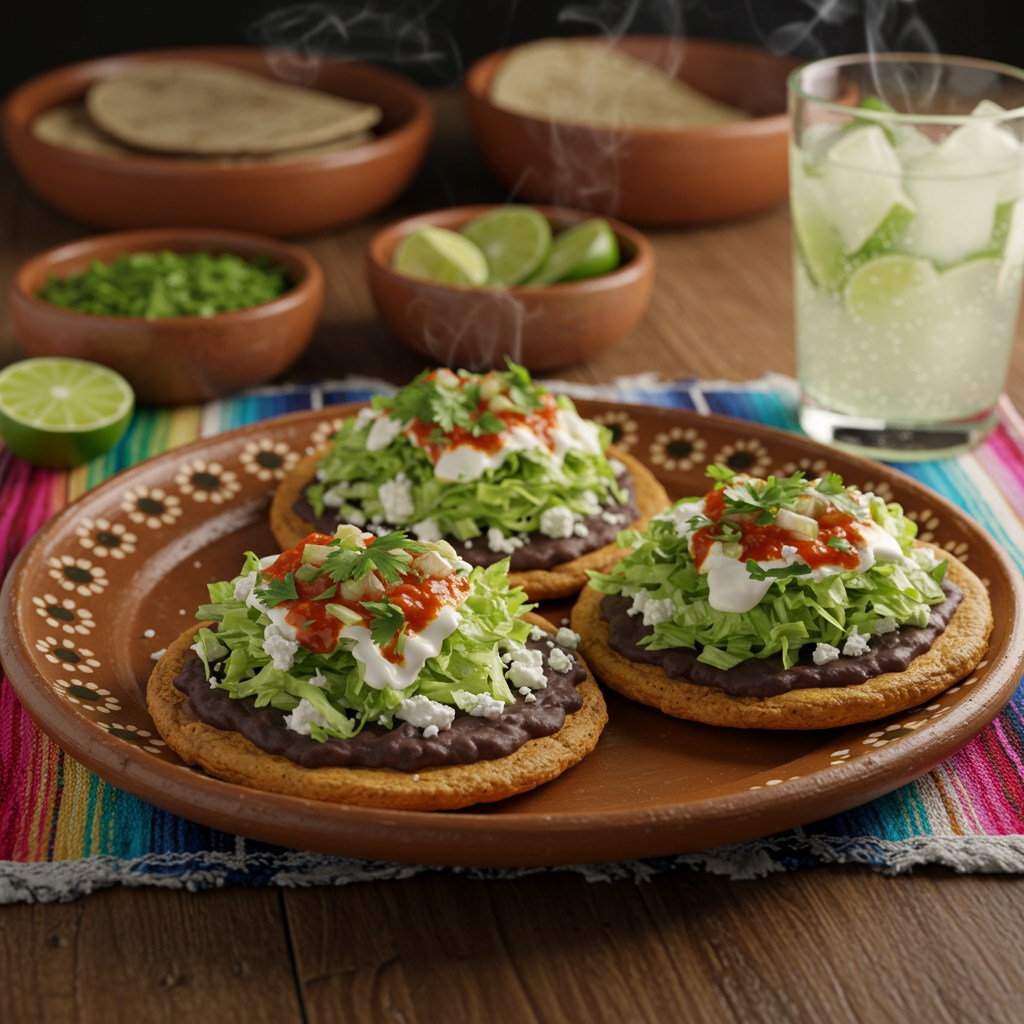 Delicioso sope de maíz con una base de frijol, coronado con carne deshebrada, lechuga, crema y queso.