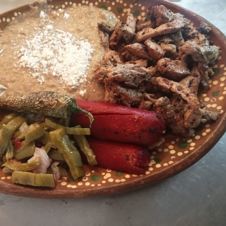 250 gr de arrachera 1 salchichón Nopales Papa Chile Frijoles