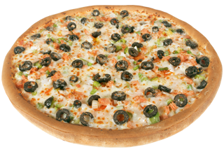 Pepperoni, tocino, cebolla, aceitunas, pimiento verde y extra queso.