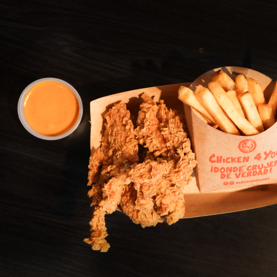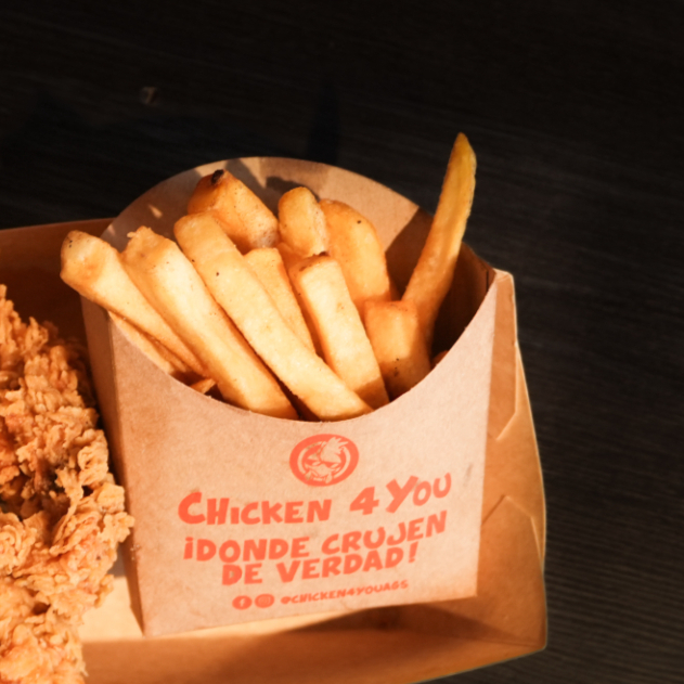 Orden de papas fritas 200 g con tiras de pollo 150 g