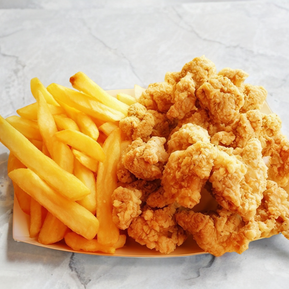 Combo de 8 aros de cebolla y papas a la francesa, incluye 1 aderezo.