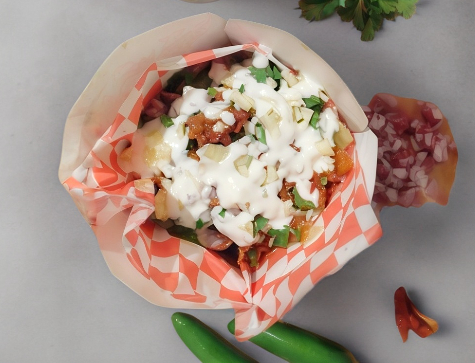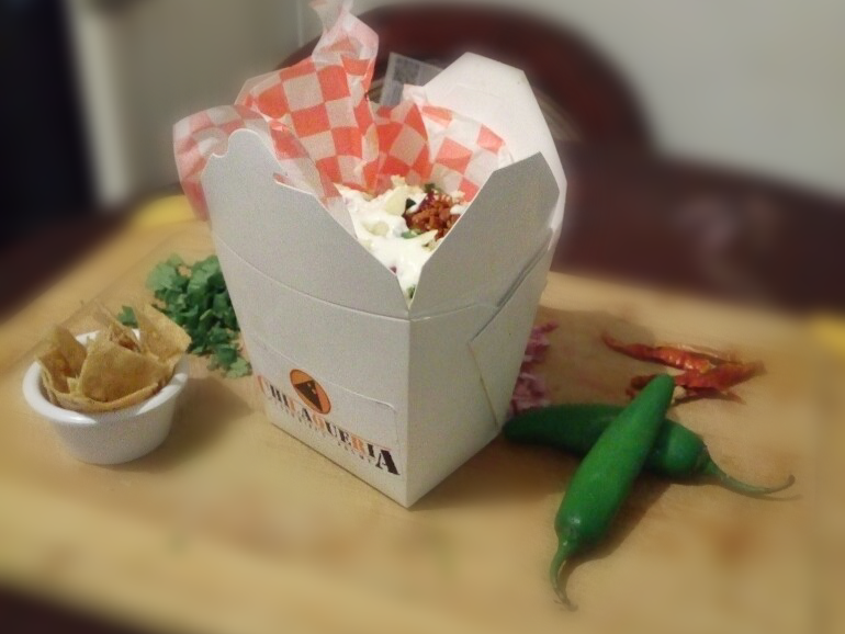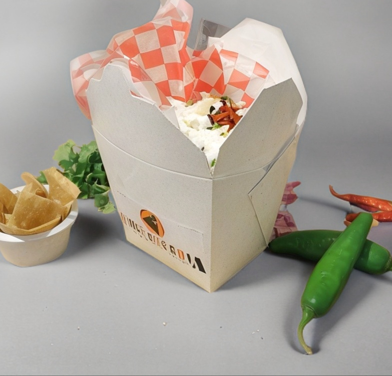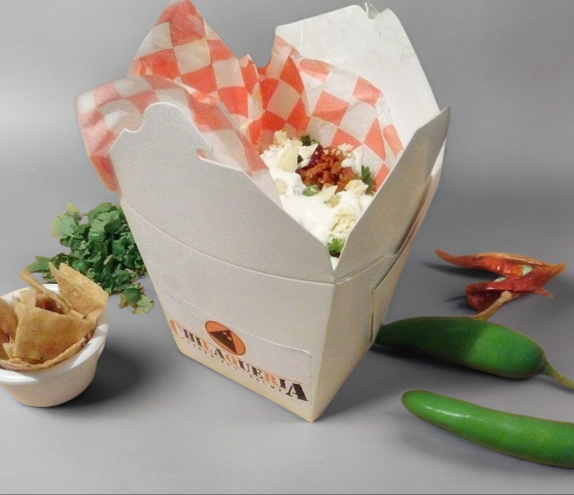 Totopos + Pechuga de Pollo Deshebrado + Salsa + Toppings.