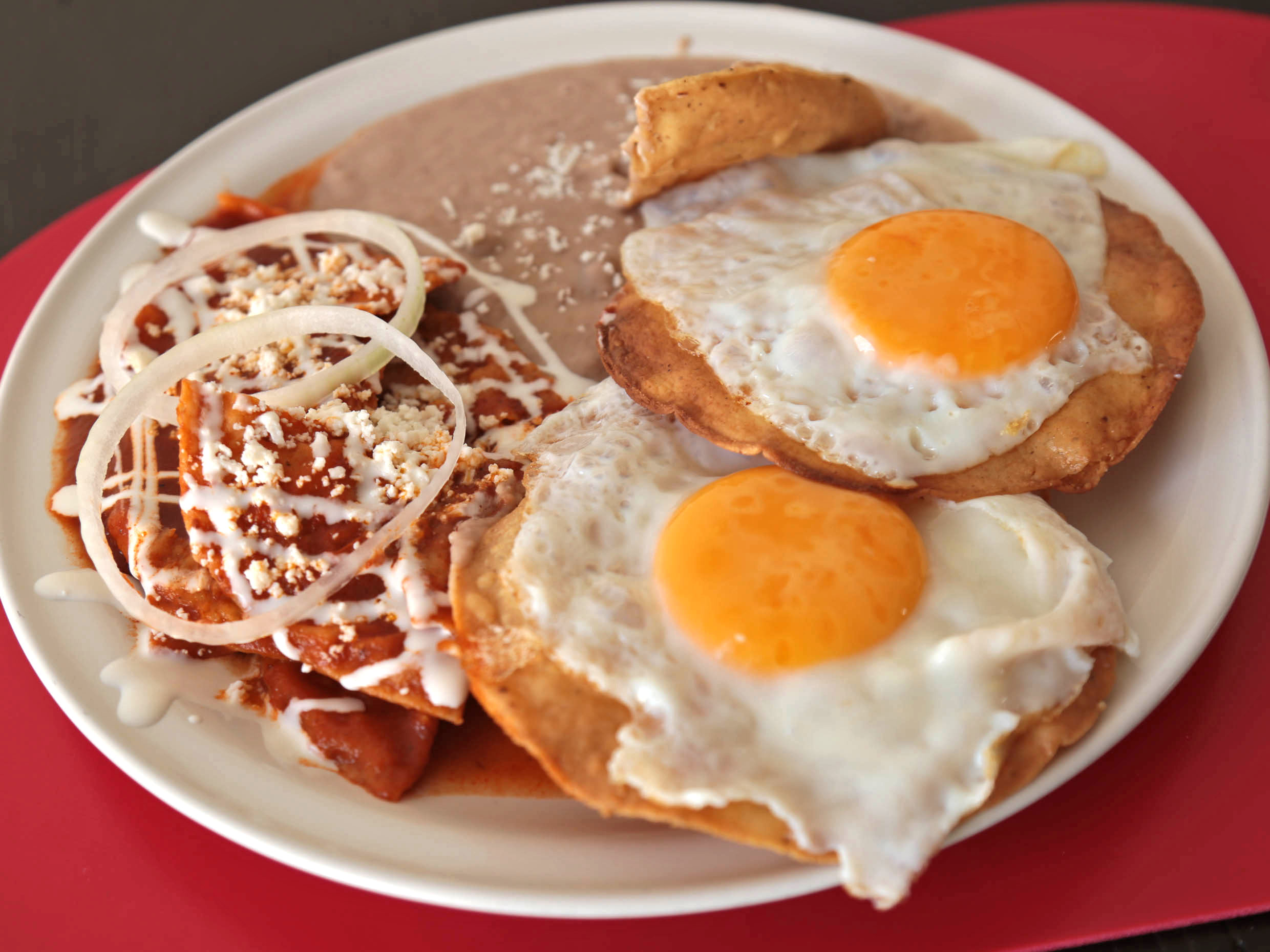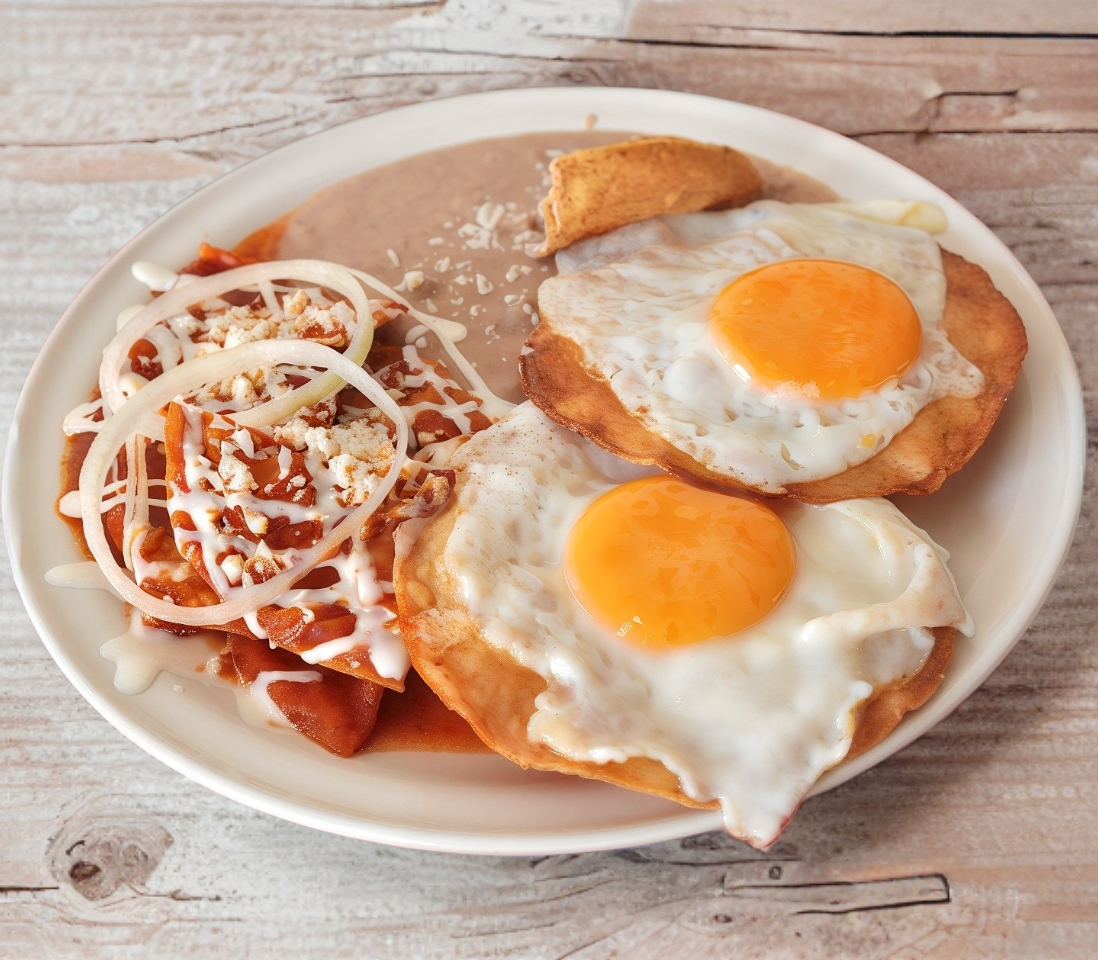 Acompañados de frijoles y sobre una tortilla dorada y crujiente.