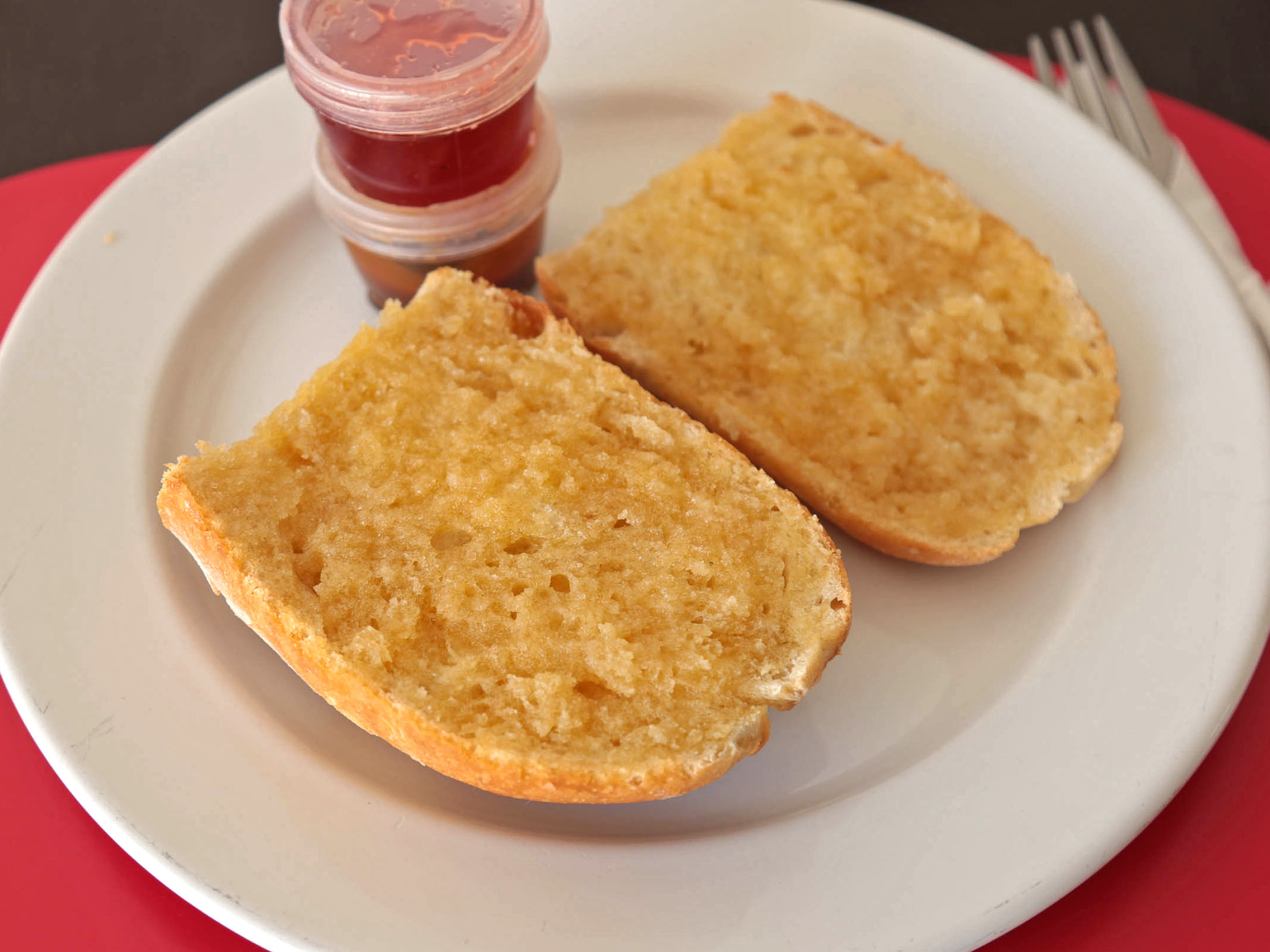 2 pz. (1 bolillo partido a la mitad ) con mantequilla y azucar, crujientes