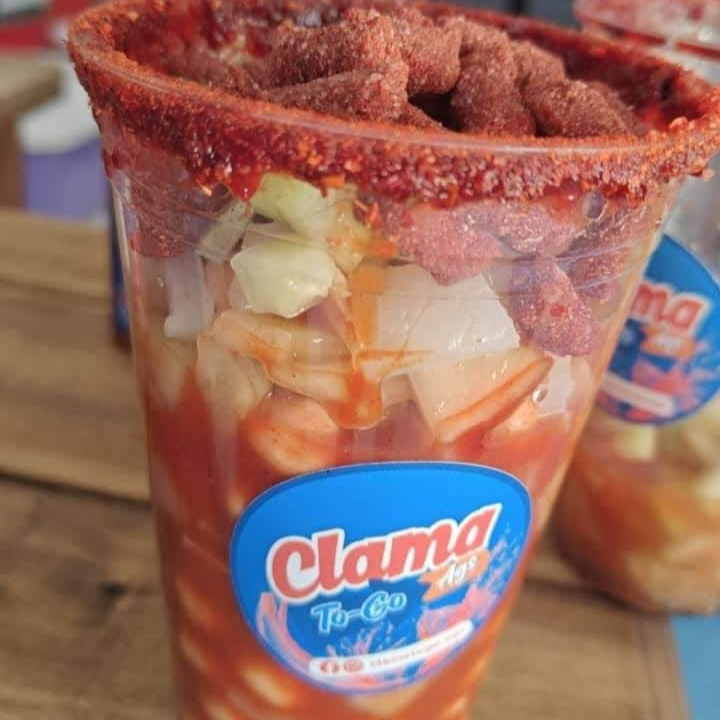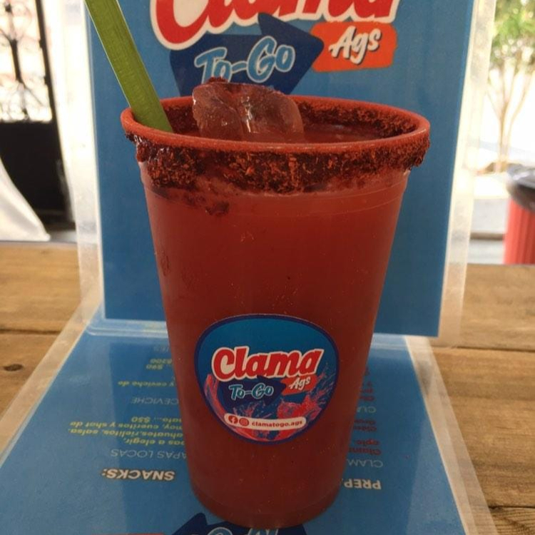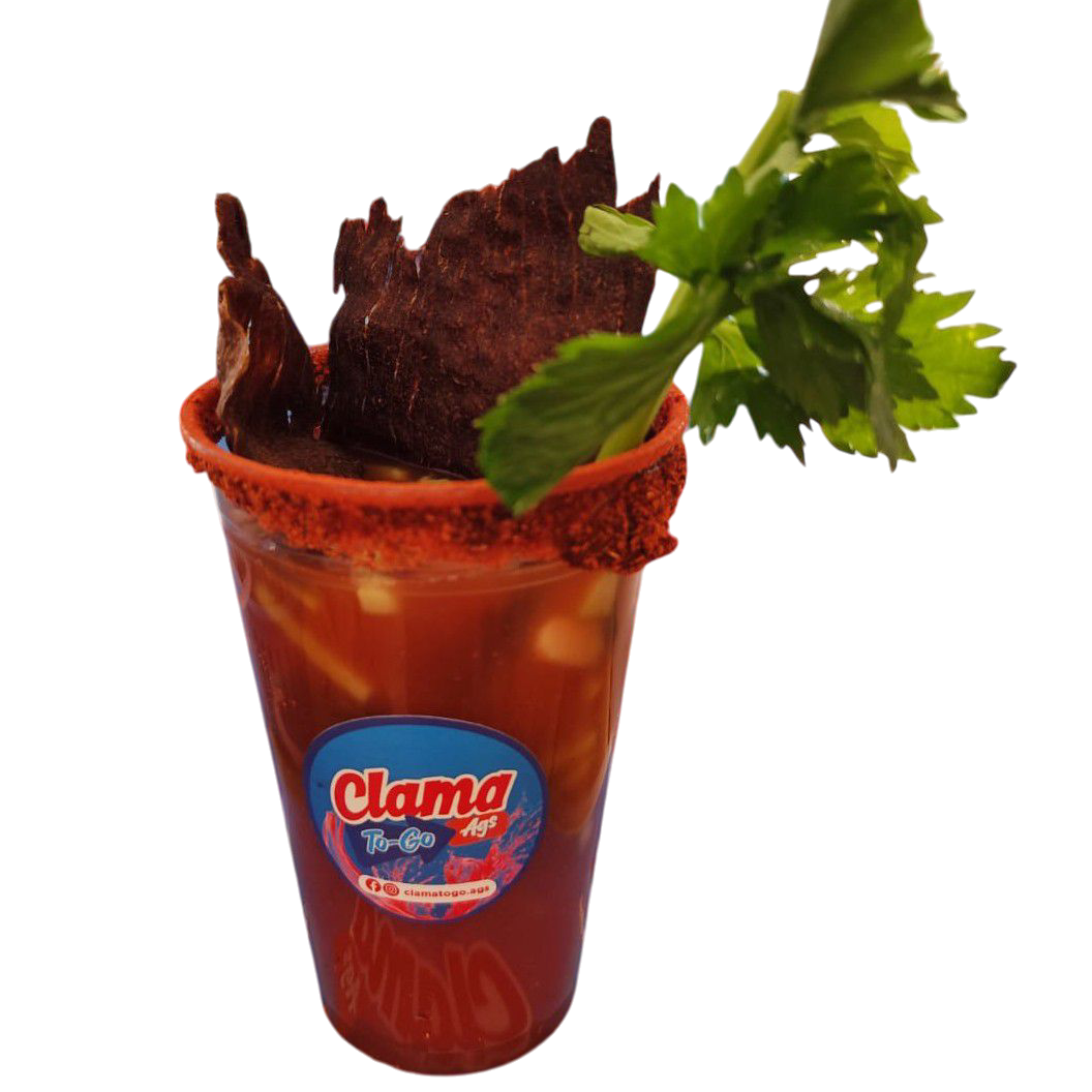 Clamato preparado, pepino y carne seca.
