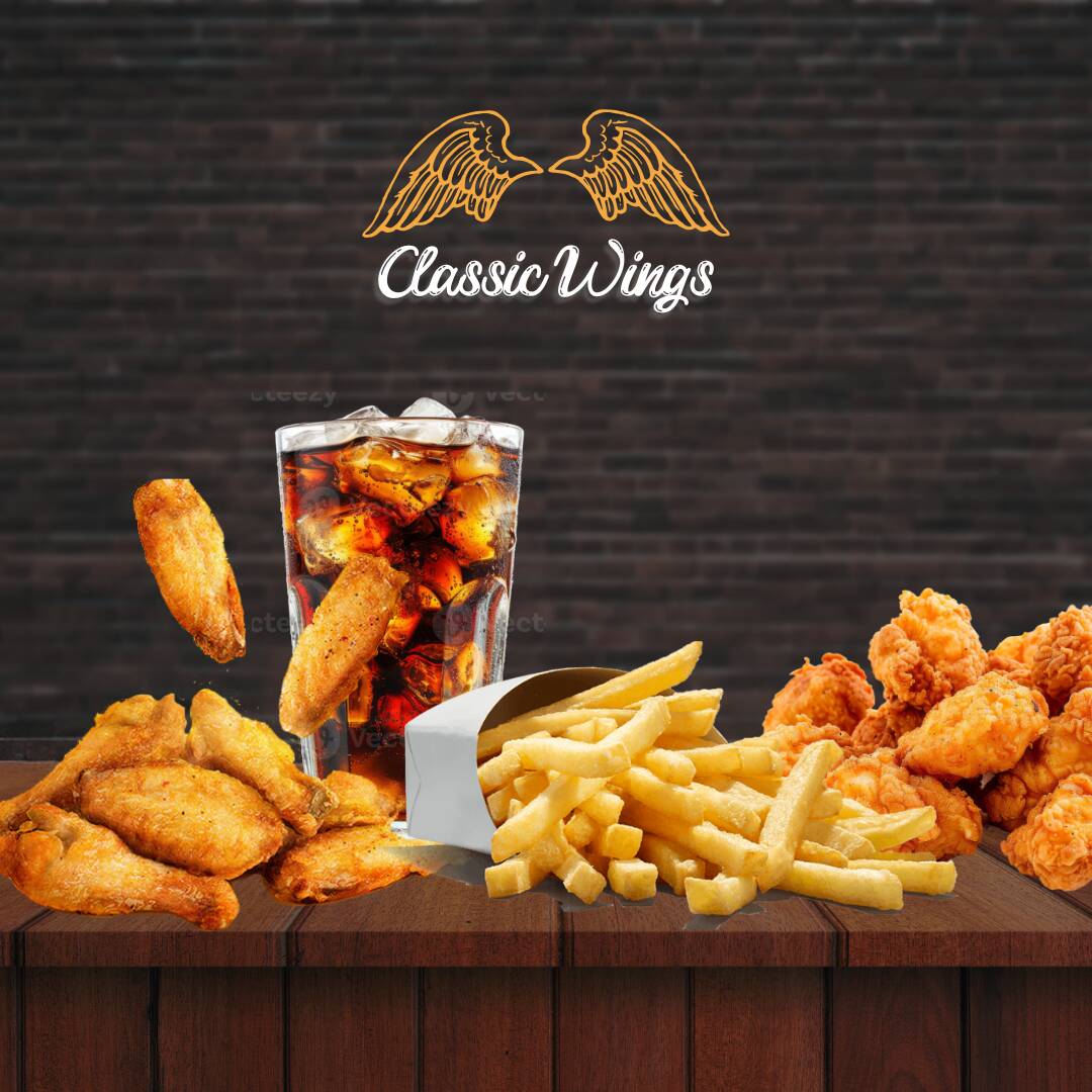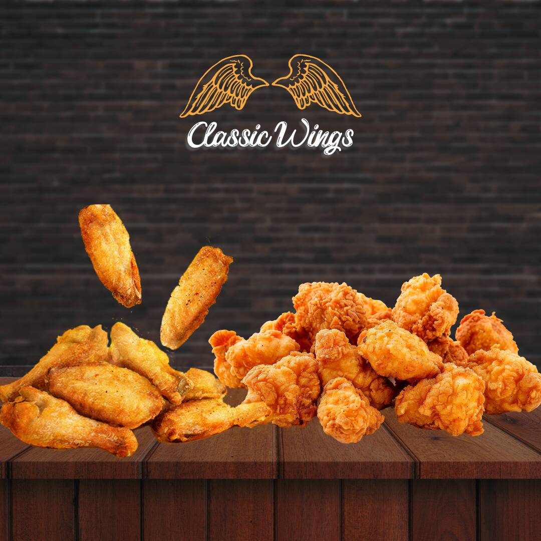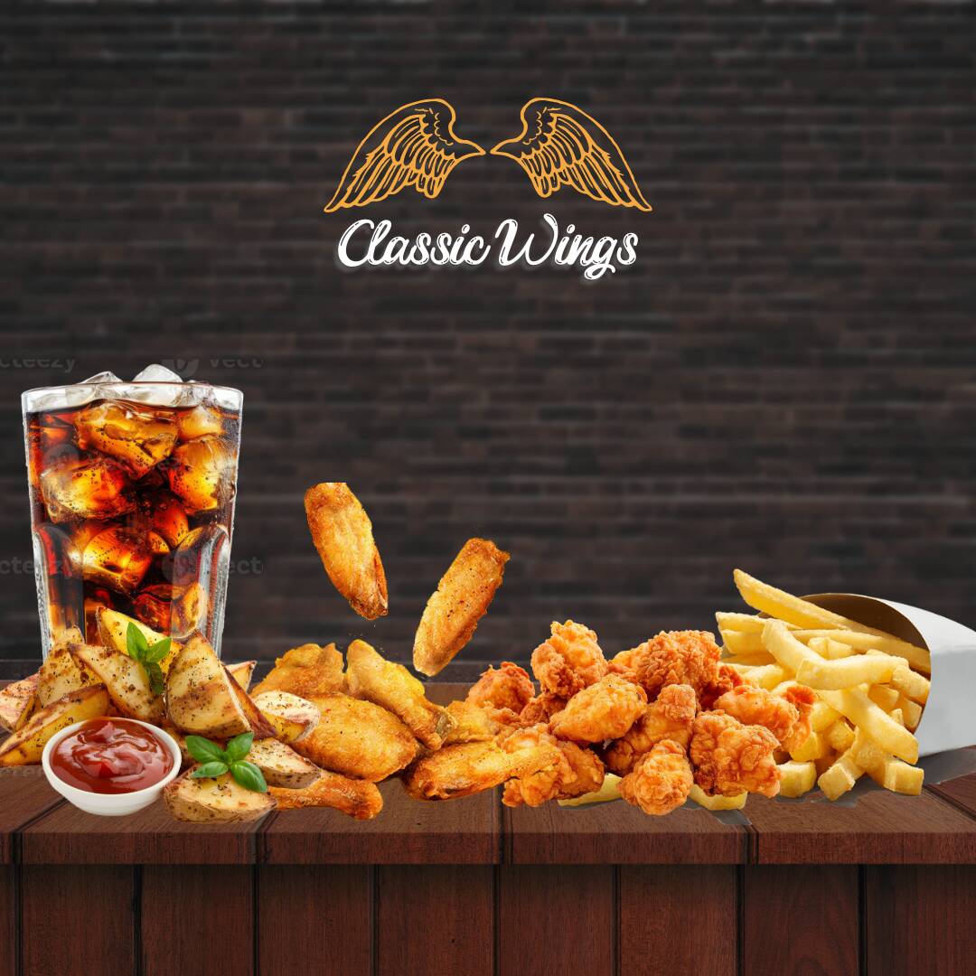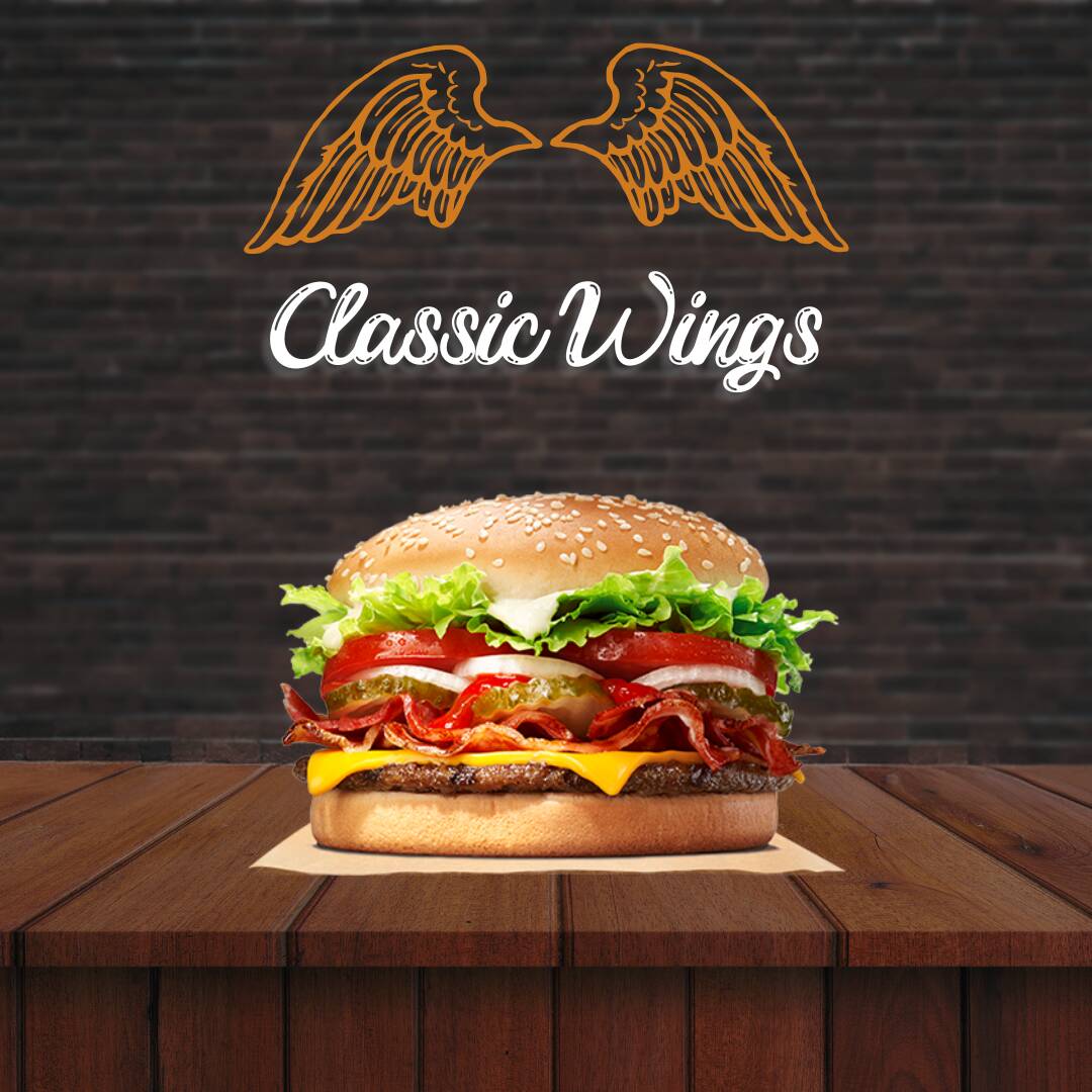 6 Alitas o 6 boneless, 150 g de papas, classic burguer, refresco.