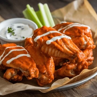 1/2 kilo de Alitas búfalo crujientes, bañadas en salsa picante y llenas de sabor.