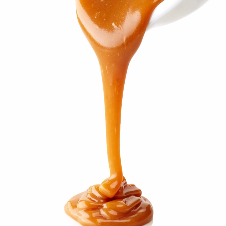Espresso, leche y jarabe de caramelo sobre hielo. Un postre bebible inolvidable.