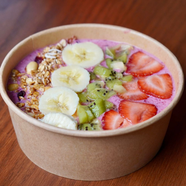 Bowl saludable con yogurt, frutos rojos, chía, fruta del día y tu topping a elegir.