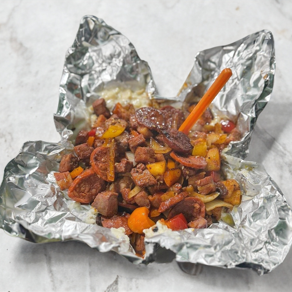 deleite cabrn con tocino que eleva el paladar a la realeza, un susurro de opulencia en cada mordida.