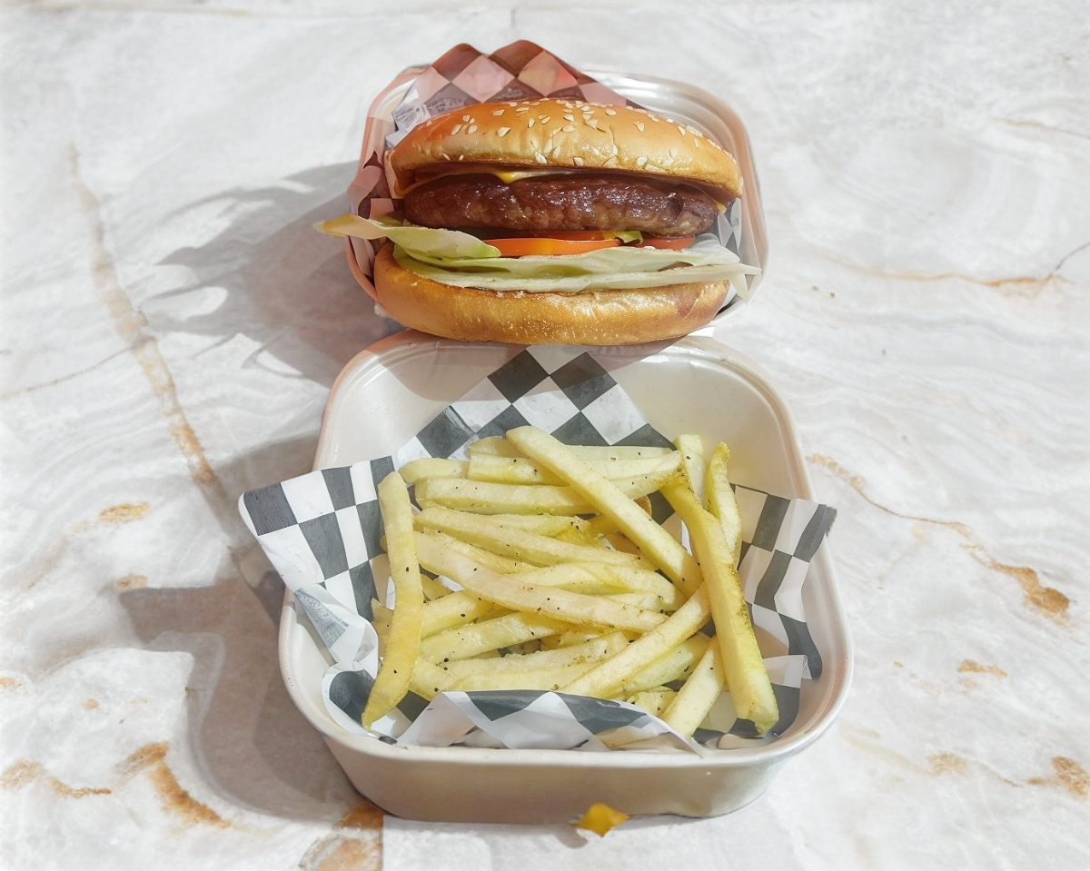Pan brioche hecho en casa 150 gr de jugosa carne de res, queso amarillo, 2 tiras de crujiente tocino bañado en nuestra tradicional salsa BBQ Acompañado no lechuga jitomate cebolla incluye papas a la francesa
