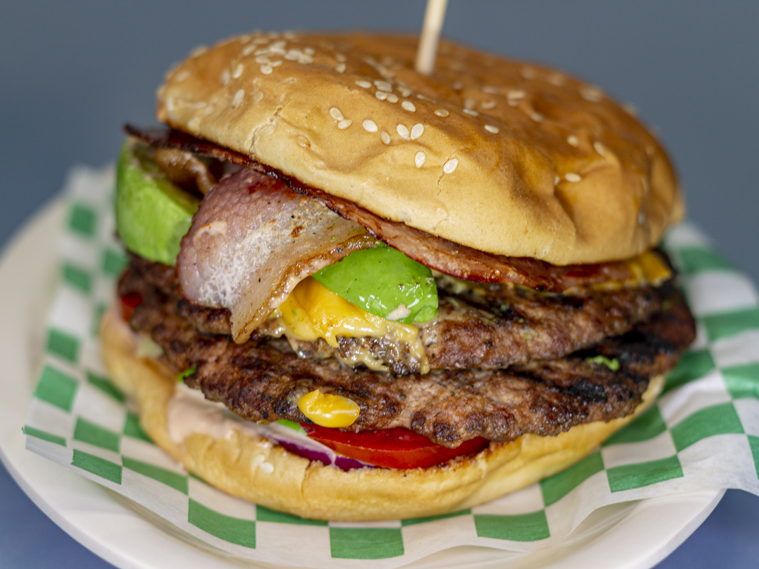 Doble carne, tocino, jamón, aguacate y queso. Todas se sirven con aderezo original mil islas, cebolla, jitomate y lechuga.