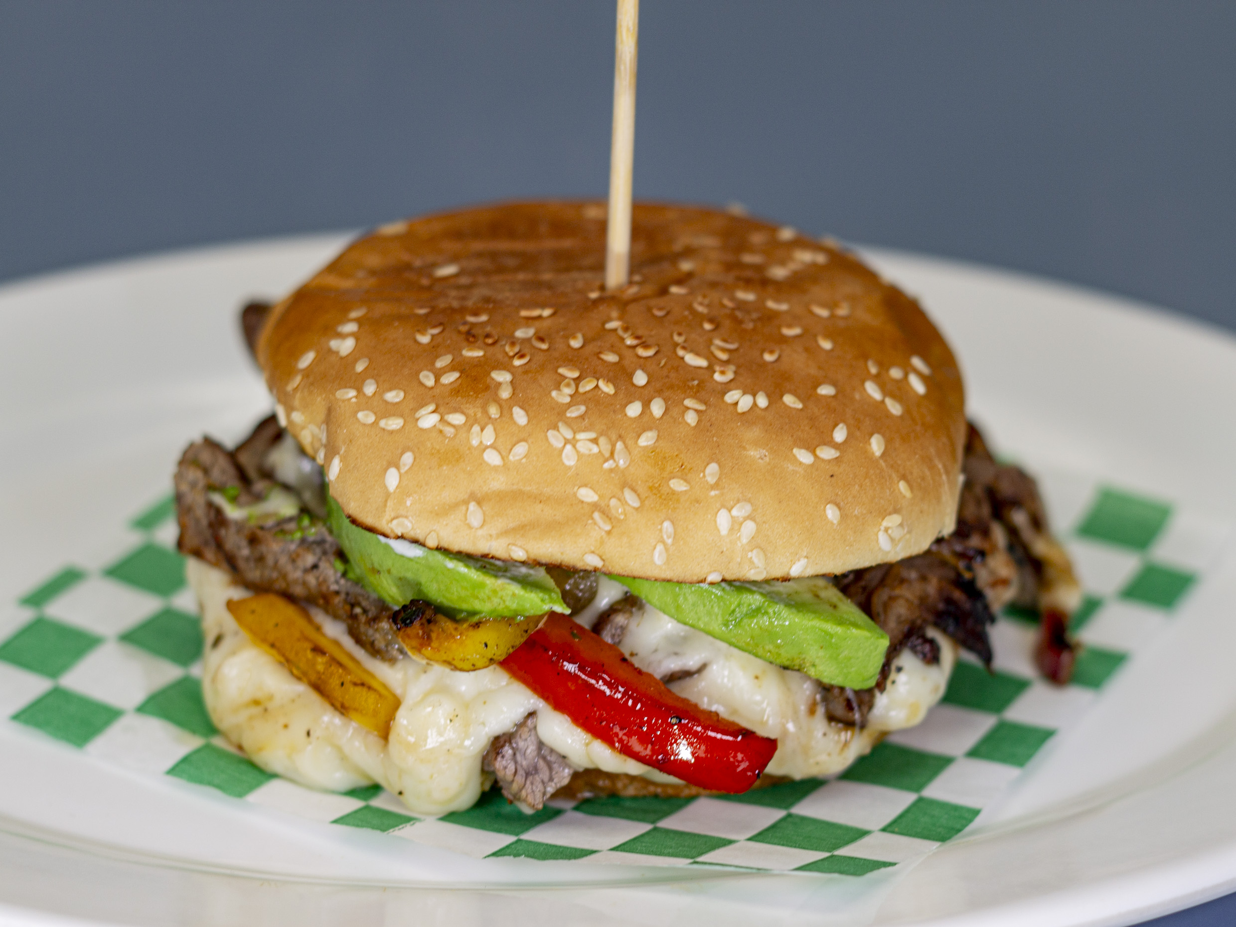 Fajitas asadas, queso, aguacate, mayonesa y verduras. Todas se sirven con aderezo original mil islas, cebolla, jitomate y lechuga.