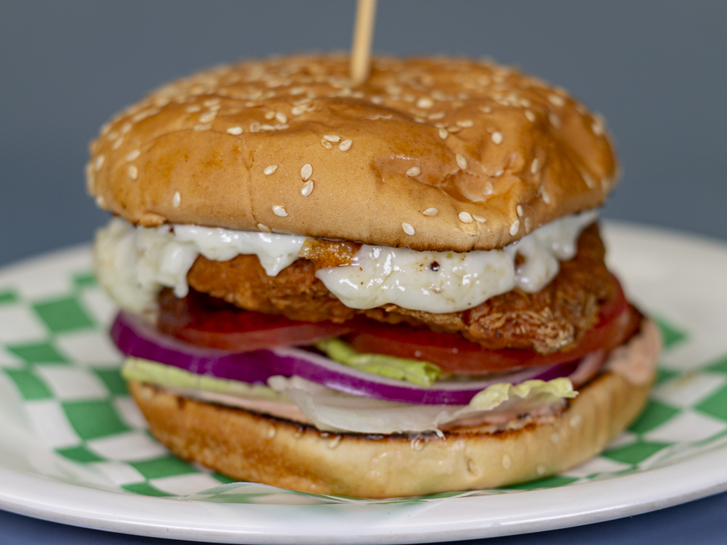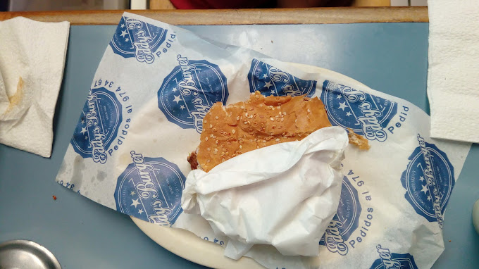 Pechuga empanizada picosita, mayonesa y queso. Todas se sirven con aderezo original mil islas, cebolla, jitomate y lechuga.