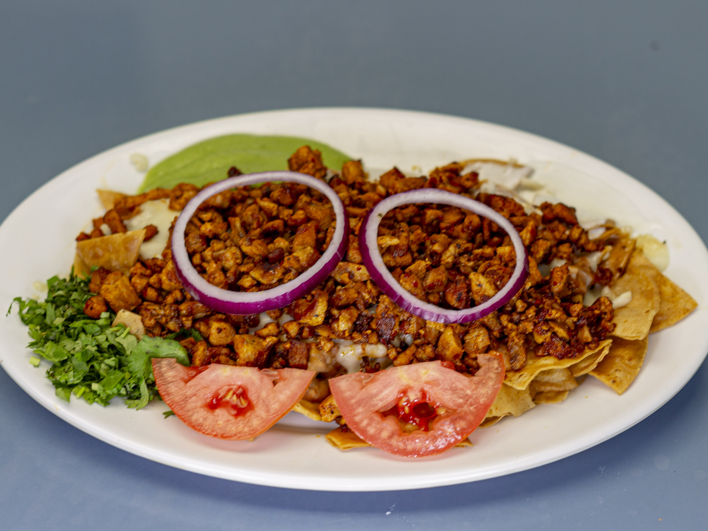 Se sirven con cilantro y cebolla asada.