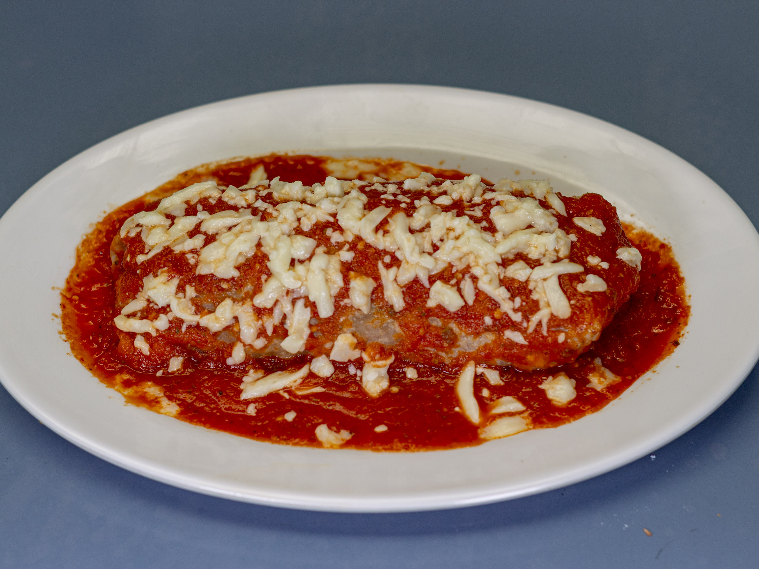 Bañado en salsa picante y queso gratinado.