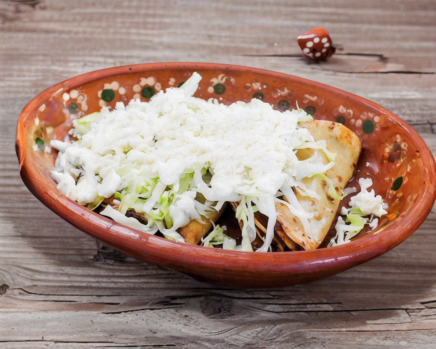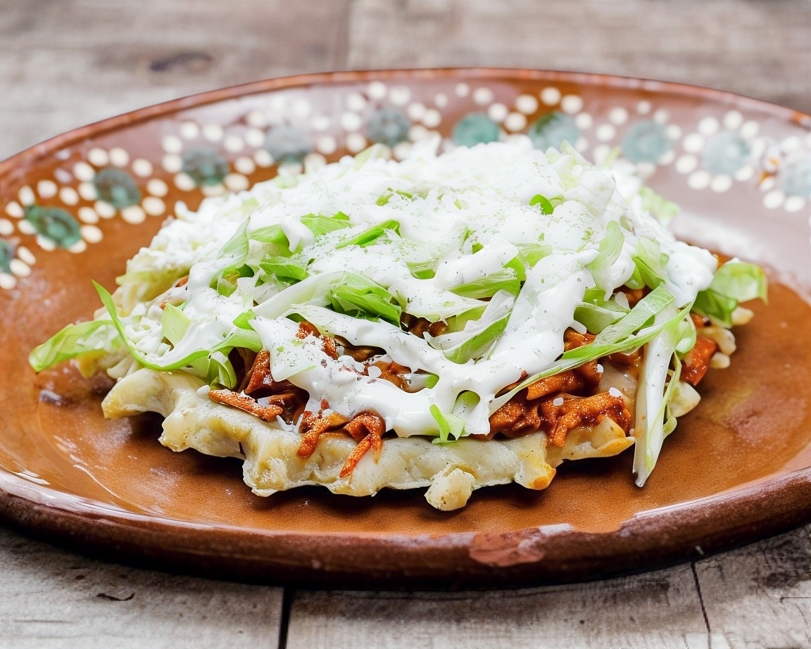 Elaborados con maza de maíz, pueden ser de pollo, carne de cerdo, cueritos o guisado de tu preferencia, se sirve con una base de frijoles, lechuga, salsa de jitomate, crema y queso.