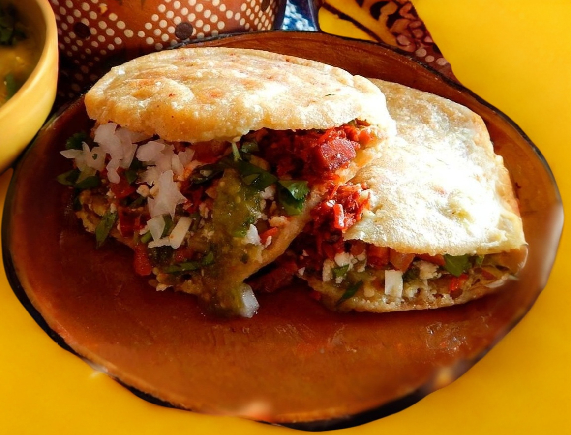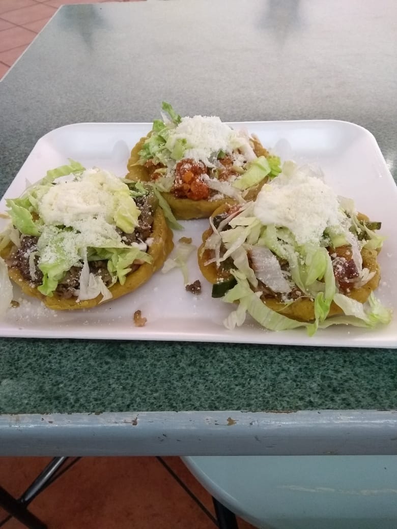 Rojo,rajas,costilla,nopales,trocitobistec o tinga) preparada con lechuga, queso y crema.