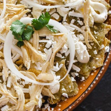 Chilaquiles con salsa queso cilantro acompañados de frijoles