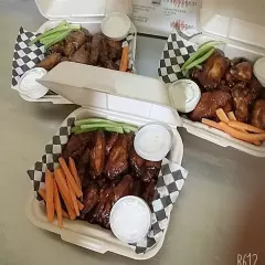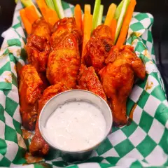 500 g De alitas, acompañadas de aderezo ranch y vegetales (zanahoria y apio).