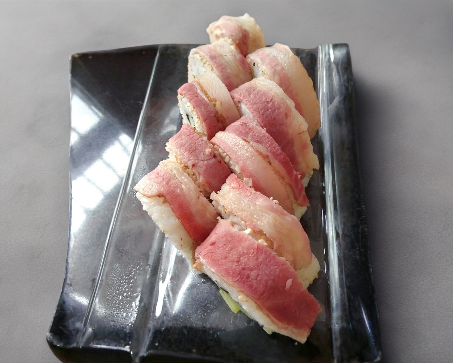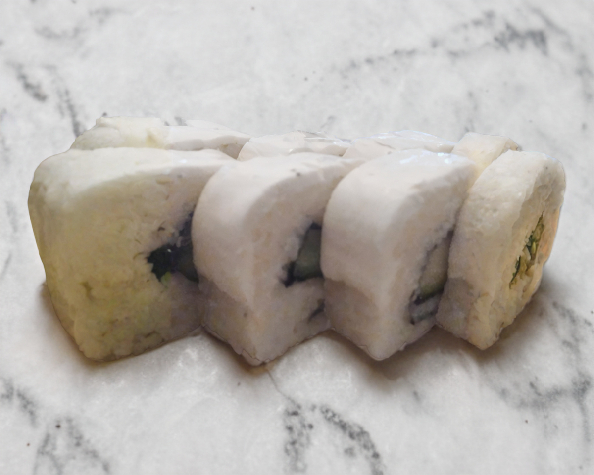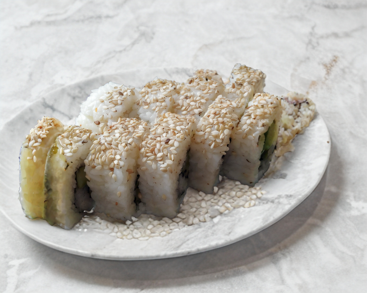 POR DENTRO PEPINO SALMON AGUACATE CUBIERTO DE QUESO PHILALDEPHIA