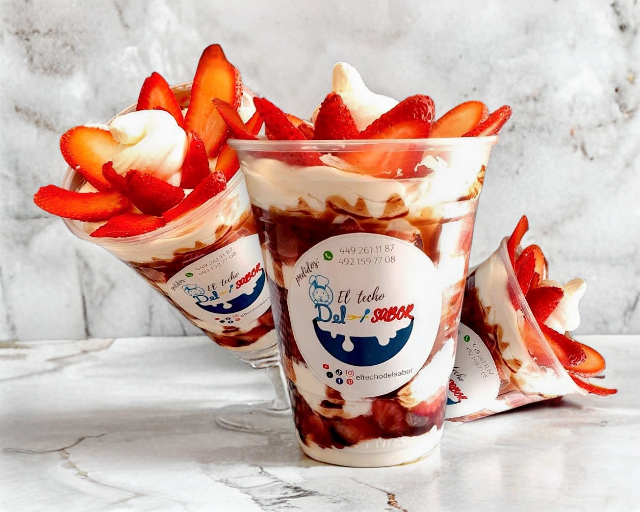 Fresas con crema artesanal, no es chantilly, receta 100% original. 2 Toppigs a elegir + Topping liquido
