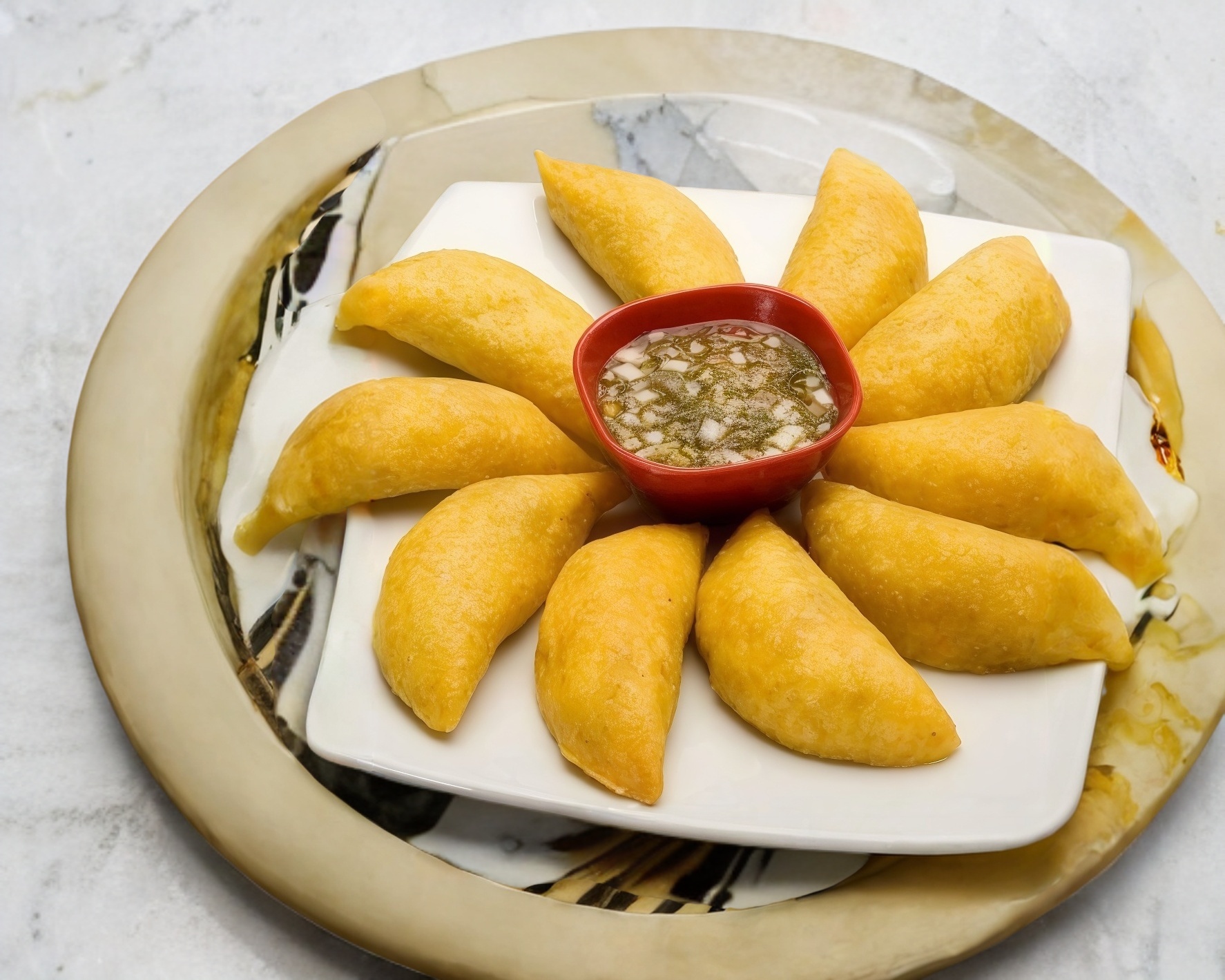 Orden con 2 empanadas de masa colombiana importada con Guisado a elegir