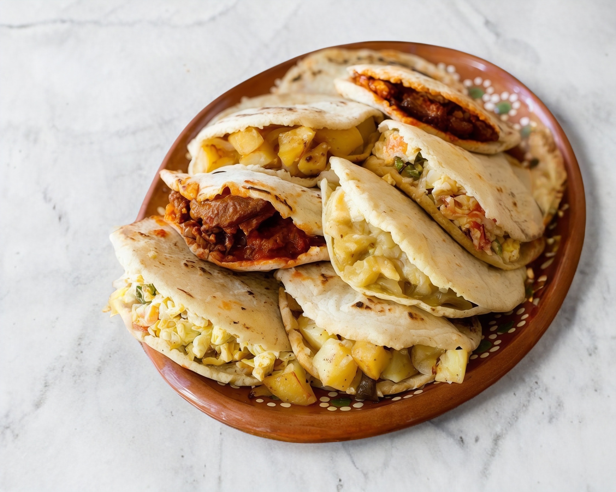 2 Arepas hechas con masa importada Colombiana, 2 Guisados a elegir en cada arepa