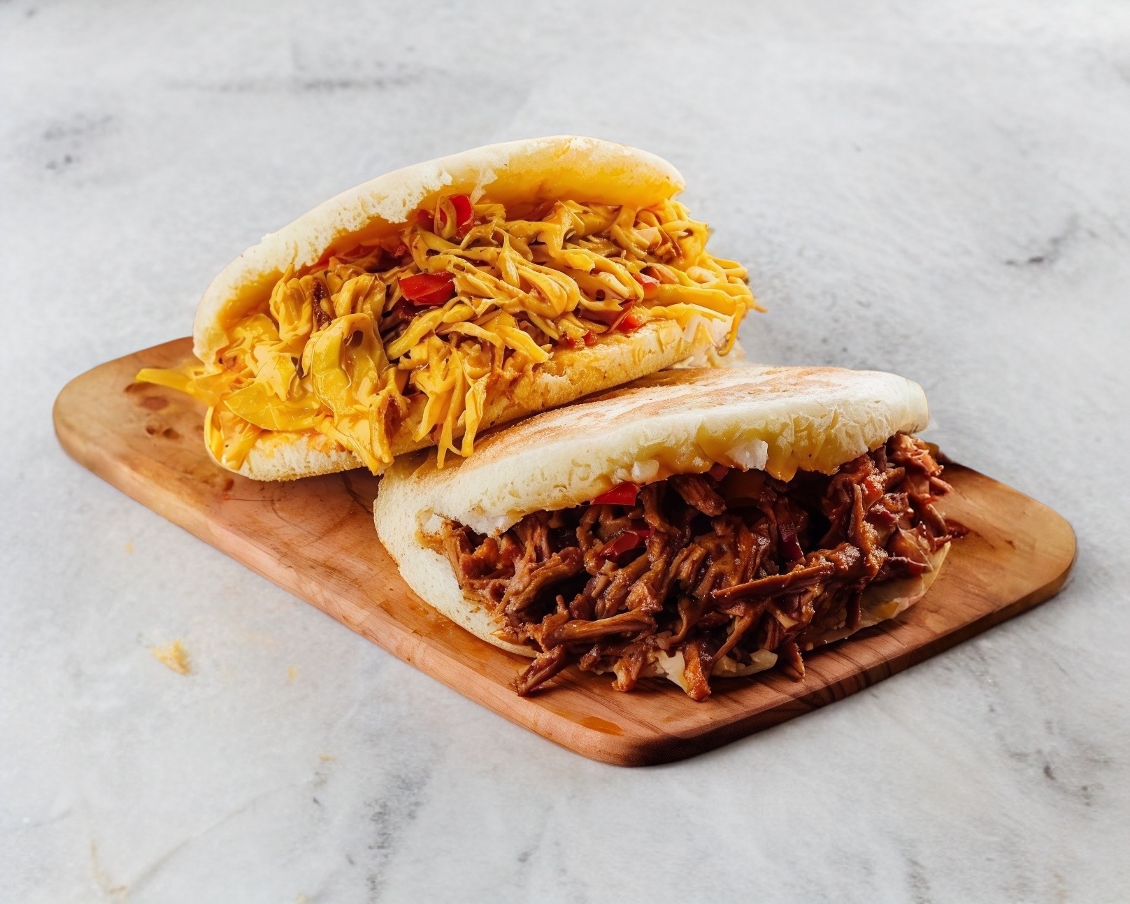 2 sandwitches de platano, Queso 🧀, Verduras, Guisado de tu elección