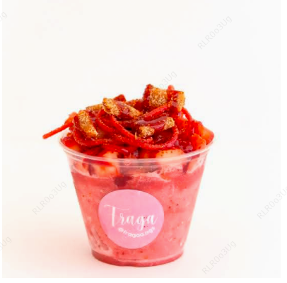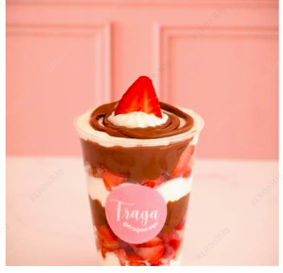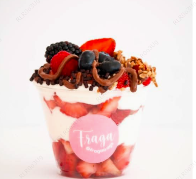Fresasas frescas en cubitos+Crema Fraga+frutos rojos+chocolate líquido+toppings