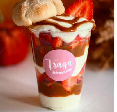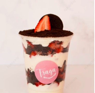 Crema deliciosa espesa, fresas frescas más galleta de Oreo.